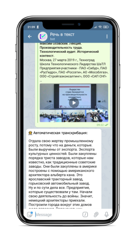 Программа «речь в текст» — это бот в мессенджере Telegram. Отправляйте файлы для расшифровки, и получайте результат в виде текста прямо в ответном сообщении бота.